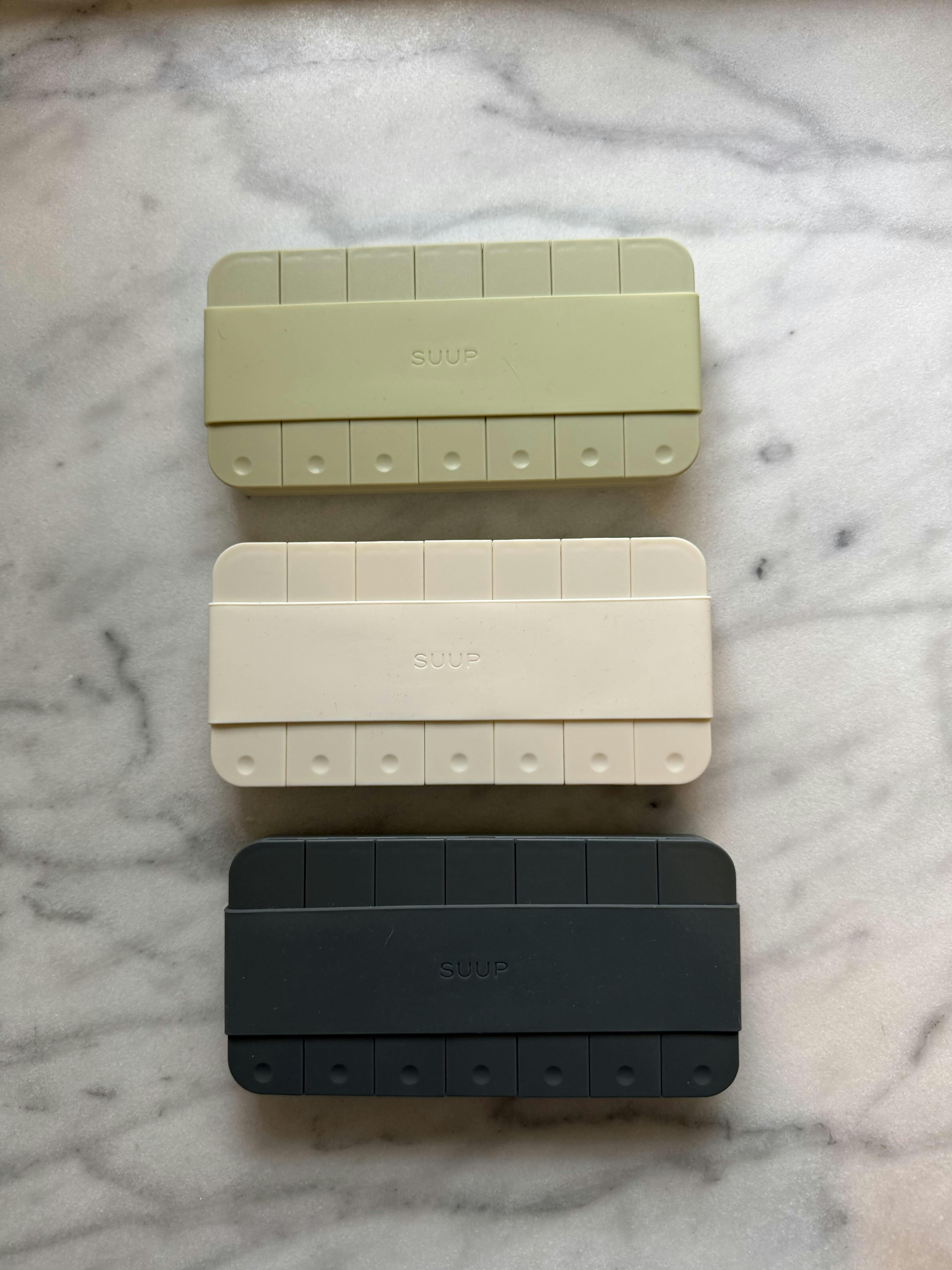 SUUP can hold everything from daily vitamins to small mints, gummies and medications.